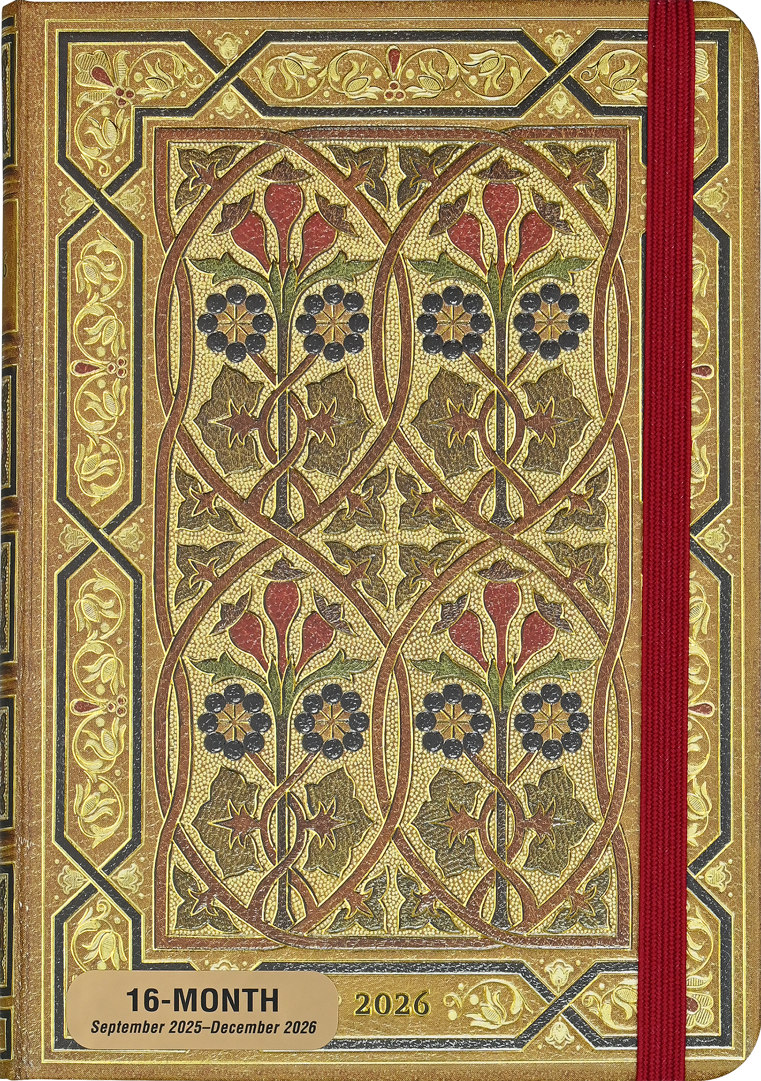 Track your schedule with this Art Nouveau weekly planner covering September 2025 through December 2026. Each two-page spread displays all seven days with ample space for appointments, events, and to-dos. Features mini monthly calendars, holiday markers, and moon phases for reference. Premium 120 gsm acid-free paper resists ink bleed-through, while the hardcover binding, satin ribbon bookmark, and elastic closure ensure durability. Compact at 5" x 7", it fits easily into bags and backpacks. Perfect for students, educators, and anyone managing a busy schedule.