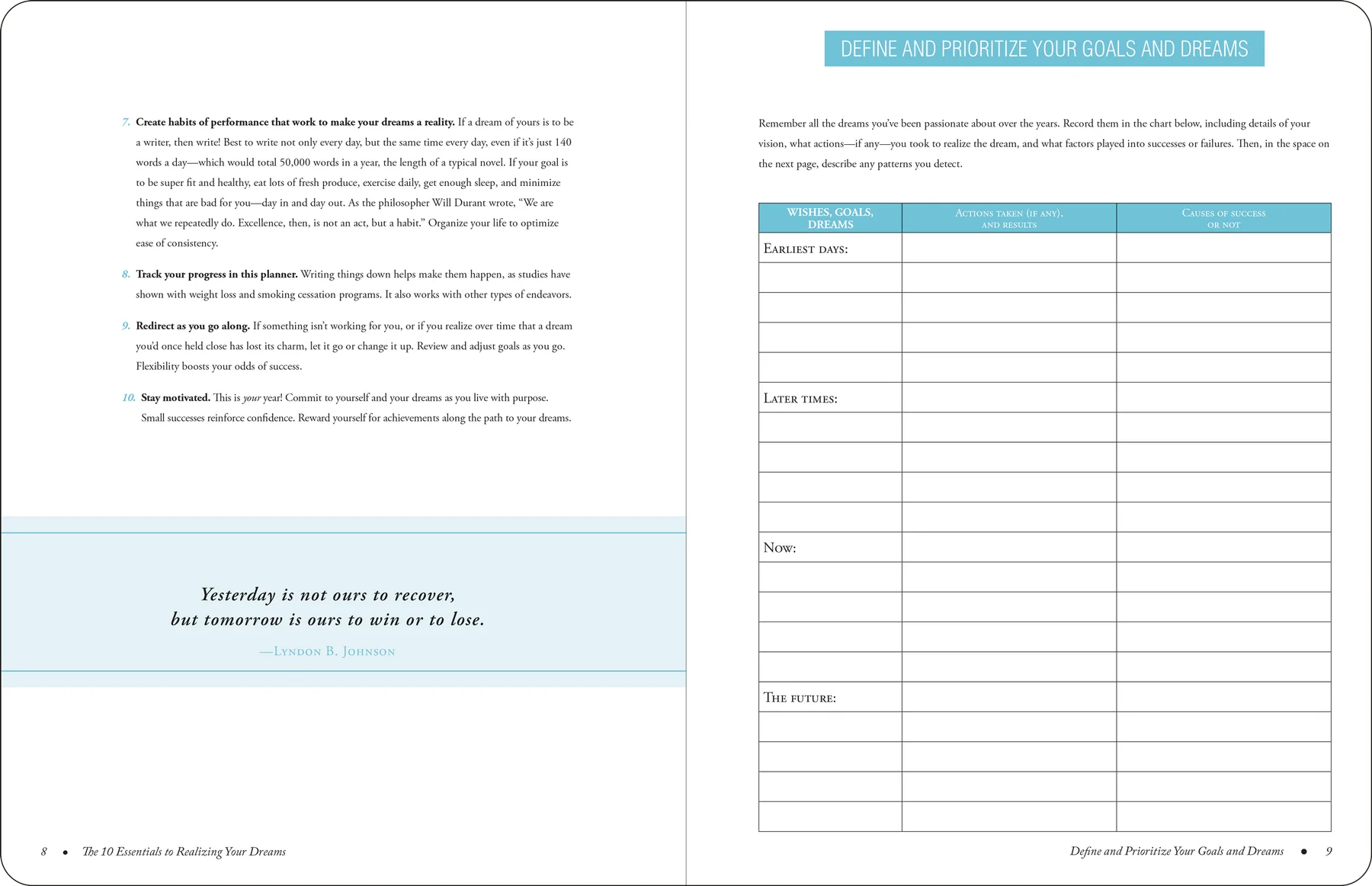 Acid-free paper, concealed wire-o binding, and elegant gold foil cover. Perfect for desk or bag. Make your dreams a reality!