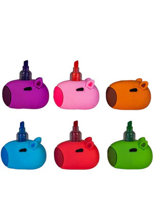 Brighten your workspace with Capybara Highlighters, featuring five stackable colours: red, green, blue, purple, and pink.