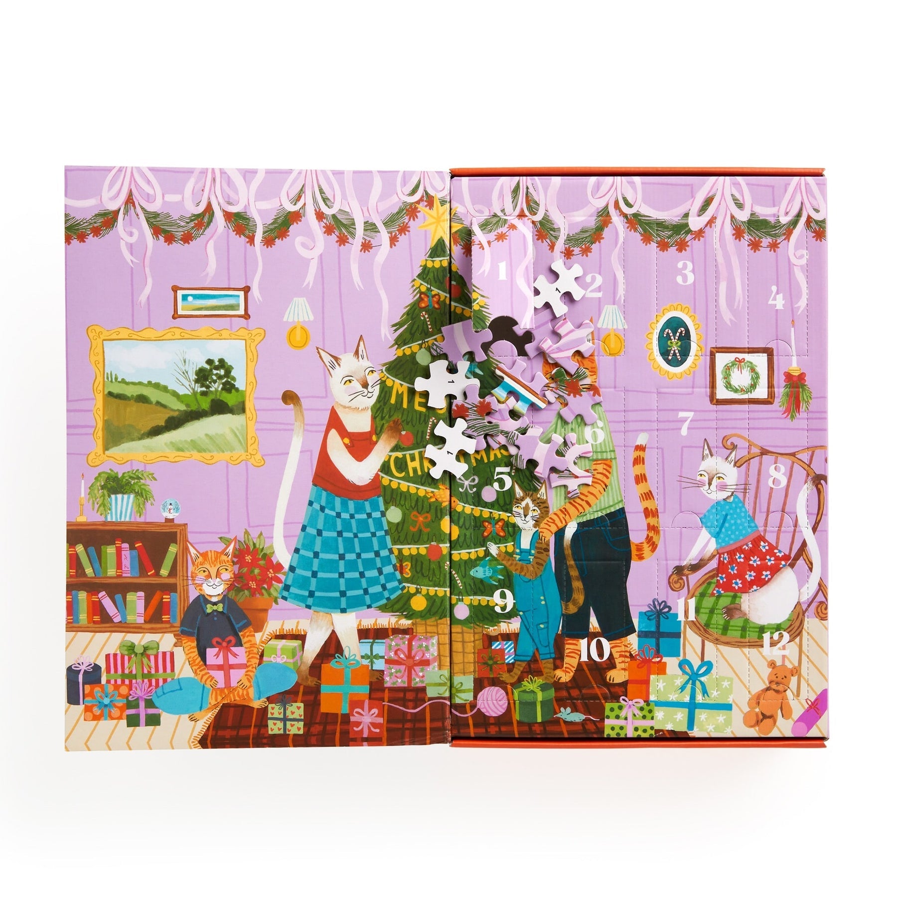 This festive advent calendar offers a unique holiday countdown experience with 12 individual cat-themed puzzle sections totalling 500 pieces. The "Meowy Christmas" collection presents a progressive puzzle challenge, with each day revealing a new feline-inspired design of increasing complexity. Join all the puzzle sections to create one 23" x 17.5" puzzle. Expertly crafted with premium materials, this countdown calendar combines the anticipation of holiday traditions with the cognitive benefits of puzzling, making it an ideal seasonal activity for cat enthusiasts and puzzle aficionados alike.