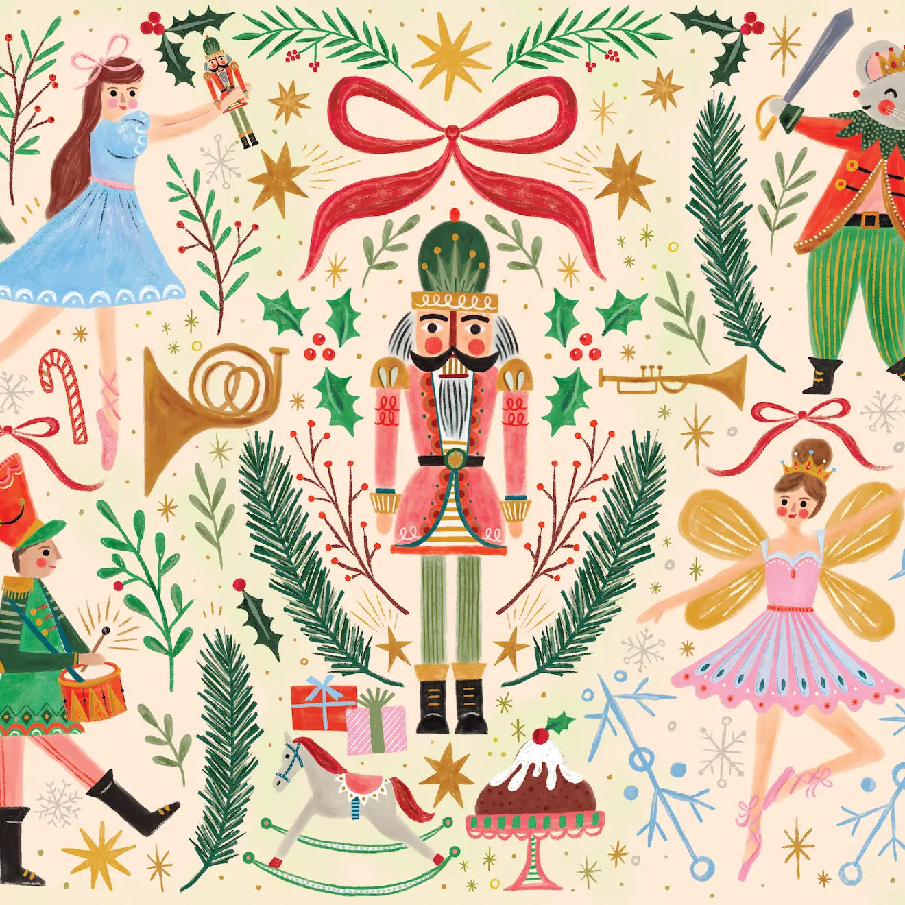 Celebrate the classic Nutcracker story with this 500-piece puzzle by artist Kenzie Elston. The completed puzzle measures 16.5" x 22.5" and includes a ribbon cut, an 8x10 color poster, and a durable box for easy storage. A perfect holiday activity.