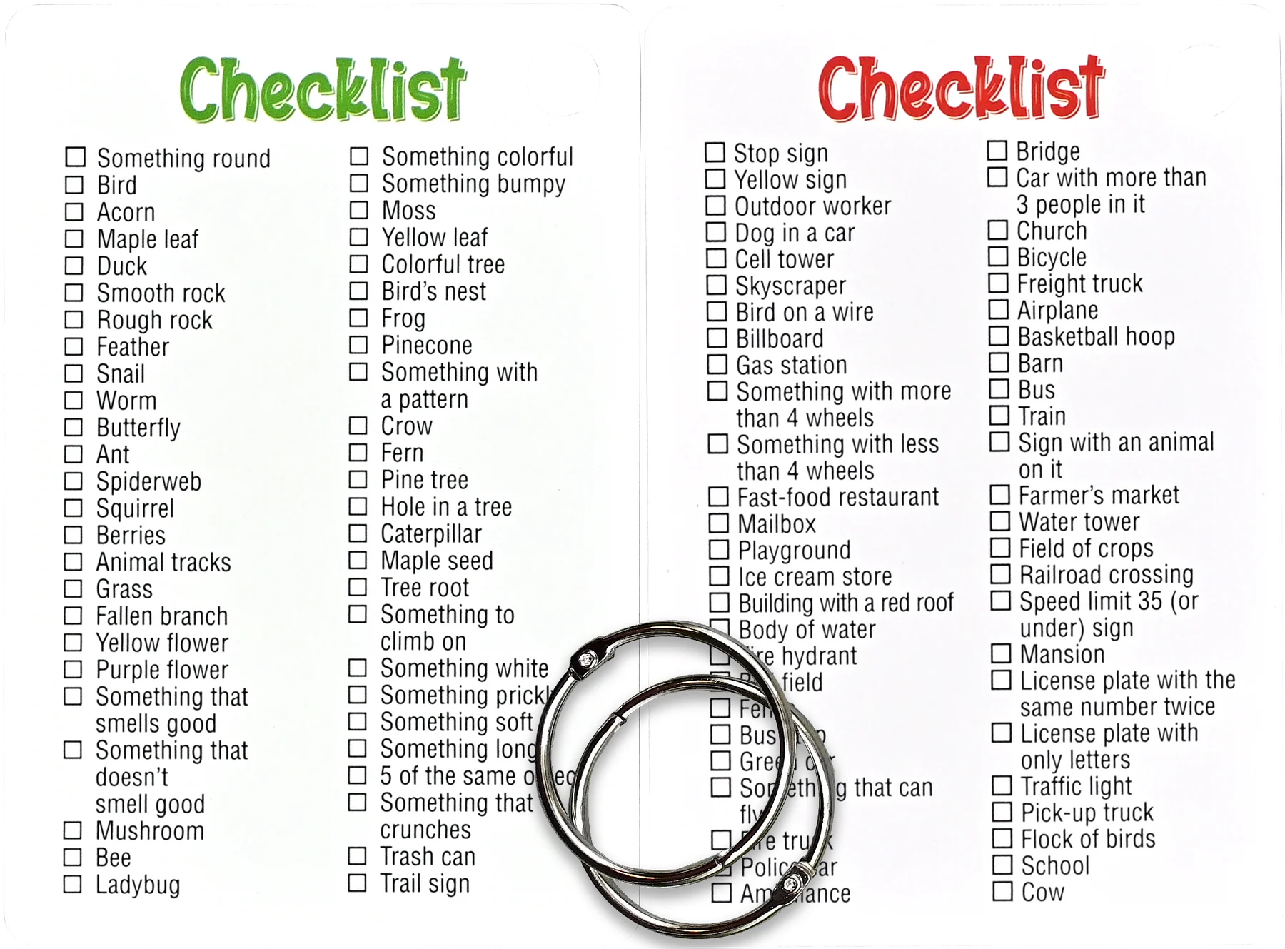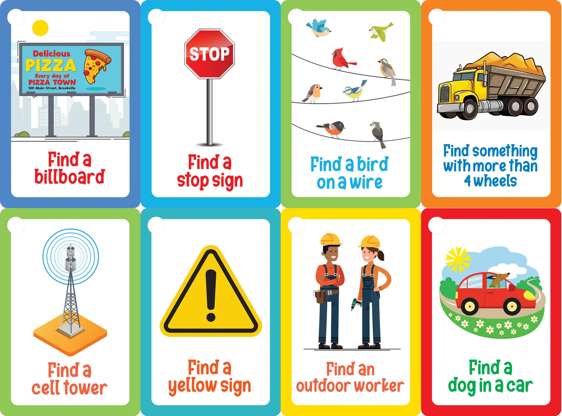 • Colorful cards help kids practice observation and explore the world around them, whether in the great outdoors or on that family road trip!