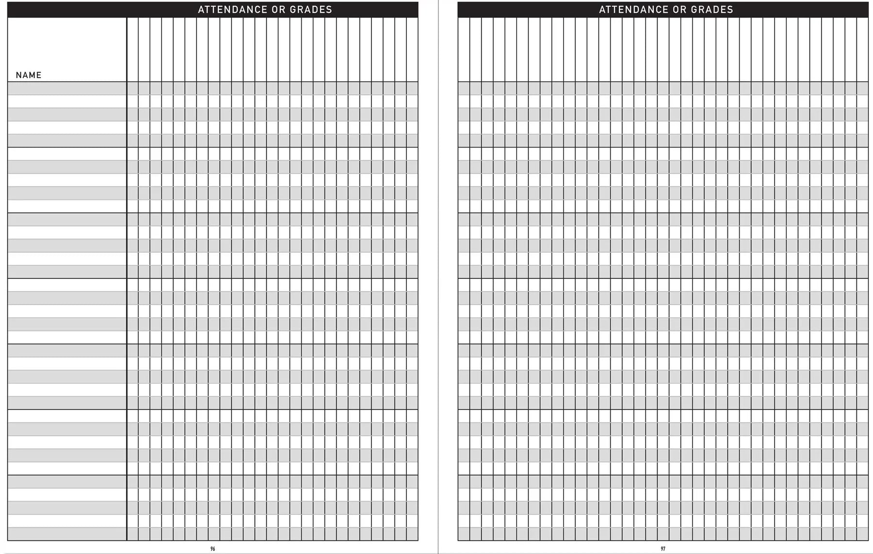 - Includes Attendance and Grades Pages for the entire 180-day school year for 7 classes, with up to 35 students per class.